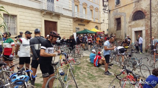 Endgültig manifestierte sich dieser Plan bei einer kleinen Ausfahrt mit erfahrenen Eroica Veteranen am Vortag, die mir durchweg zur 135 Kilometer-Variante rieten und sich diesmal auch selbst darauf beschränkten, obwohl sie einen gut trainierten Eindruck bei mir hinterließen. Mehr als 200 km auf Naturstraßen in diesem Terrain erschienen mir im bestehenden Trainingszustand einfach unvernünftig.